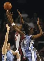Whittington, averaging 18.6 points and 11.9 rebounds, managed only four points in the first half against the Tar Heels' tough front line of Larkins, Pringle and reserves Jessica Breland and Iman McFarland. She had a better second half, finishing with 15 points and nine boards before fouling out with 3:19 left and N.C. State trailing 69-61.