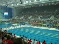 I woke up at 6 a.m. on Saturday, too nervous and anxious to sleep any longer. Then I had to wait nearly half a day for the moment I have been waiting for my whole life. I spent the day trying to rest as much as possible and shaving and I don’t mean my 5 o’clock shadow. I tried to focus on what I had to do for the race. My warm-up at the Water Cube went well and I was feeling ready to do something great, but, man, I was nervous. It doesn't matter how much confidence you have in yourself, at the Olympics, every little race is an epic battle. I tried to stay as calm as possible before my race. It took me about 15 minutes to put on my body suit those things are even tighter than they look on television. Then I headed over to the ready room to wait for the third heat. I could tell that I wasn’t the only person in the room who was nervous. Now I know what people mean when they say “you could cut then tension with a knife.” You know when you're afraid of heights and really high up and someone tells you, "Don't look down?" When they called my heat to march out to the blocks in front of the largest crowd I've ever seen at a swim meet, I had to tell myself, "Don't look up!" Right before we stepped on the blocks, I took a quick look out of the corner of my eye. Oh-my- God! Those were the only words that formed in my mind, and they boomed over and over in my ears. Even now, I cannot possibly describe the feeling such a crowd gave me, other than to say I have never been that pumped with excitement before in my life. Or that nervous, either. I should interject here that my goal through many, many, many ups and downs has been to hit the 1:01 mark in my event. For years, I have told myself that before I retired from competitive swimming, I wanted to see 1:01 on the clock after I touched the wall. And then I knew I would be able to say I gave it all I had. When the gun went off, I hit the water and swam my heart out. When I touched the ball, I thought I had broken all my fingers, I slammed into it so hard. But I was able to whip my head around and look at the clock 1:01.8! Life-time goal achieved. I had this huge goofy smile on my face, and I flashed the Wolfpack sign to Cullen’s mom and tried to work my way through the media maze. I was attacked by my girlfriend, but managed to get to my cell phone to call Coach Teal. He said he was proud of me, which meant lot to me a lot. A few minutes later, I did what all swimmers are trained to do when they reach their lifetime goal: I set a new, much higher one.