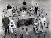 We are ready to add another member to our team, NC State diver Chelsea Ale, who will spend one day a week scanning and editing many of the photos that are currently locked away in filing cabinets. We will share some of the more interesting stuff, like the above picture, circa 1957, that features championship players and coaches.