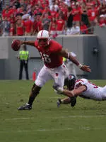 Wilson was 21-of-35 through the air for 322 yards with four touchdown passes for the third consecutive game. His team and career-high 91 rushing yards gave him 413 of NC State's 530 total yards (78 percent).